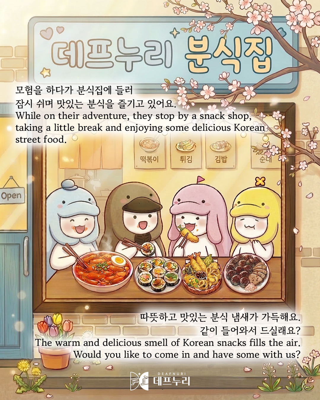 잠시 데프누리 분식집에 들러 따뜻한 휴식을 즐기고 있어요